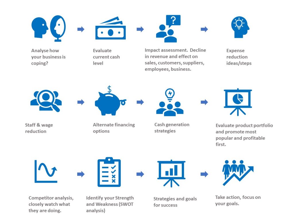 Revisiting your business plan and set new achievable goals. Improve efficiencies within your processes. Promote popular products, review your pricing margins and identify new markets.